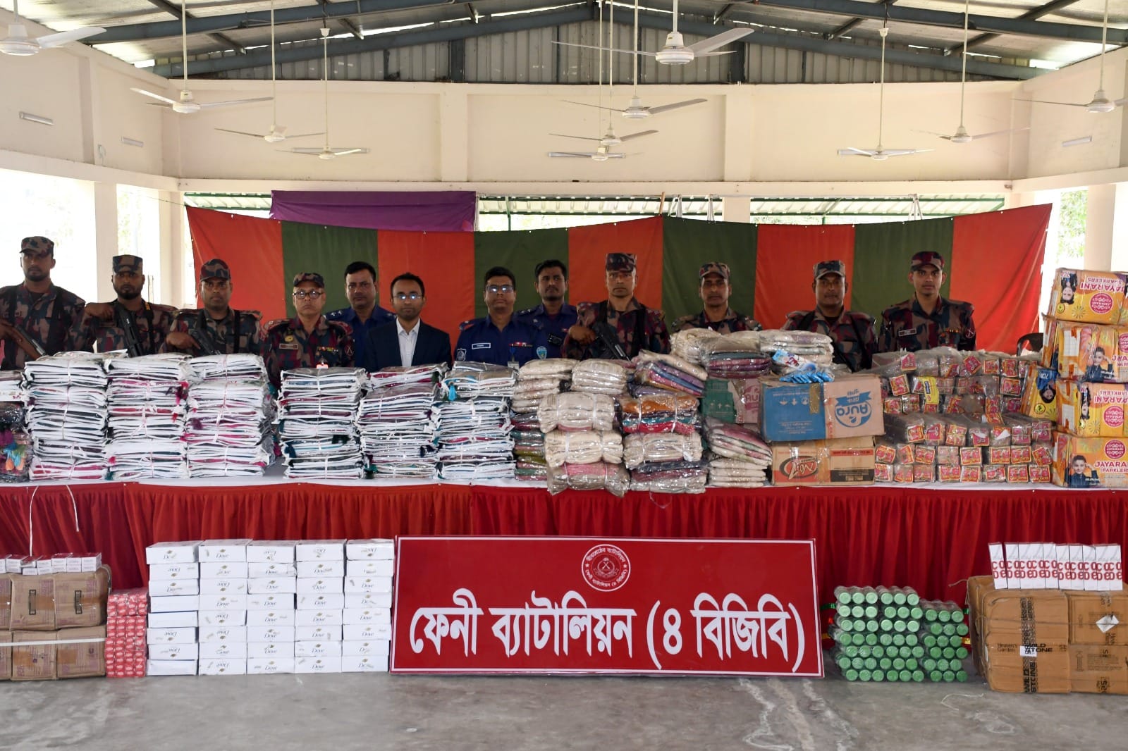 এ সময় সেখান থেকে বিপুল পরিমাণ ভারতীয় শাড়ি, থ্রি-পিস, তেল, বডি স্প্রে, সাবান, টুথপেস্ট, ফেশওয়াশ ও আতশবাজিসহ দুইজনকে আটক করা হয়। জব্দ পণ্যের আনুমানিক বাজারমূল্য ১ কোটি ২ লাখ ১৫ হাজার ৮০০ টাকা।